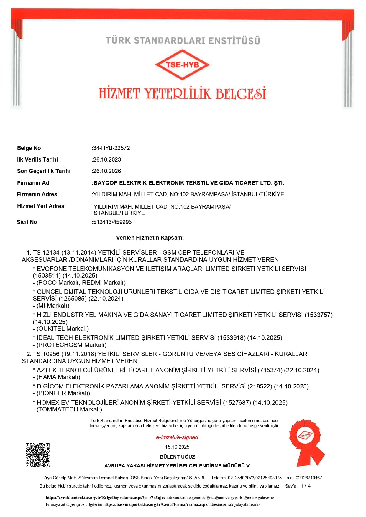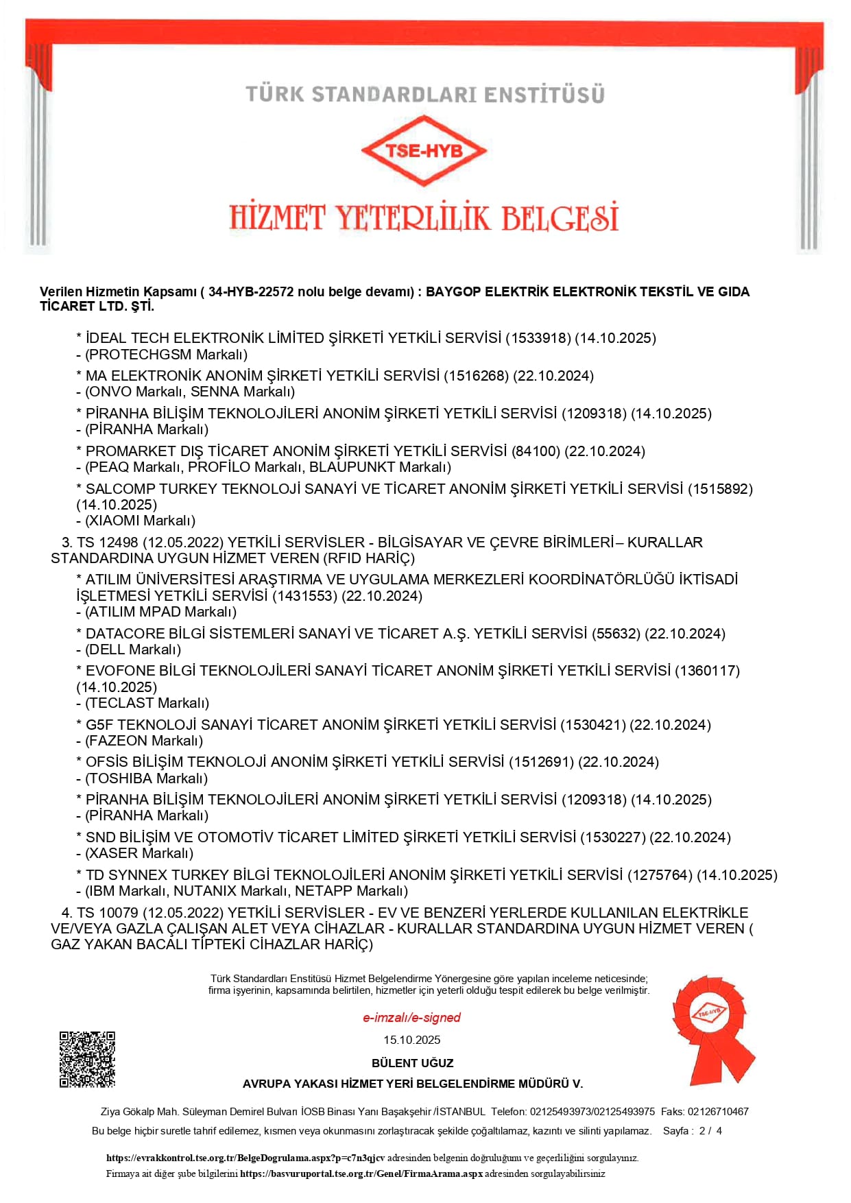Baygop Elektronik olarak yetkili servis belgelerimiz ve resmi sertifikalarımız